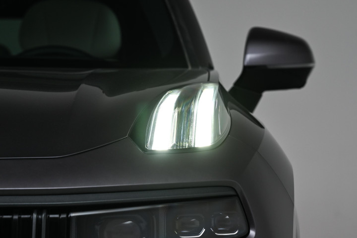 领克09外观沿用“都市对立美学”设计,整体造型与老款相似但细节更精致。前脸采用黑色直瀑进气格栅,搭配分体式大灯,格栅边缘用镀铬条装饰,既显庄重又带运动感。智能大灯含84颗光源,支持自动转向和智能远光调节,夜间能根据路况调整照射范围。车身尺寸为5042/1977/1780毫米,轴距2984毫米,属于标准中大型SUV体型。侧面线条流畅,全系标配感应式隐藏门把手,解锁时自动弹出,降低风阻且具仪式感。车尾采用熏黑贯穿式尾灯,下方银色护板与车头呼应,增强越野风格。新增“暗夜紫”“山野绿”车漆,搭配20英寸轮毂和255宽胎,整体视觉效果兼具豪华感与力量感,满足个性化需求,同时提升整车质感。