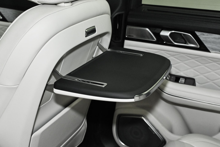 领克09此次改款重点升级了大五座空间布局。第二排座椅宽度达1366毫米,坐垫深度540毫米,腿部空间可拓展至1130毫米,乘坐更宽敞。全车座椅均采用NAPPA真皮包裹,前排配备通风、加热和8点按摩功能,副驾还增加了280毫米长的四向电动腿托,提升舒适性。第二排同样支持通风、加热、按摩,右侧座椅配有承重18公斤的可折叠小桌板,并搭配遮阳帘和双层隔音玻璃,细节贴心。后备厢常规容积691升,放倒第二排座椅后可扩展至1522升,形成近似双人床的平整空间,兼顾日常使用与长途出行的装载需求。整体设计在保证乘坐舒适的同时,强化了空间实用性与豪华质感。